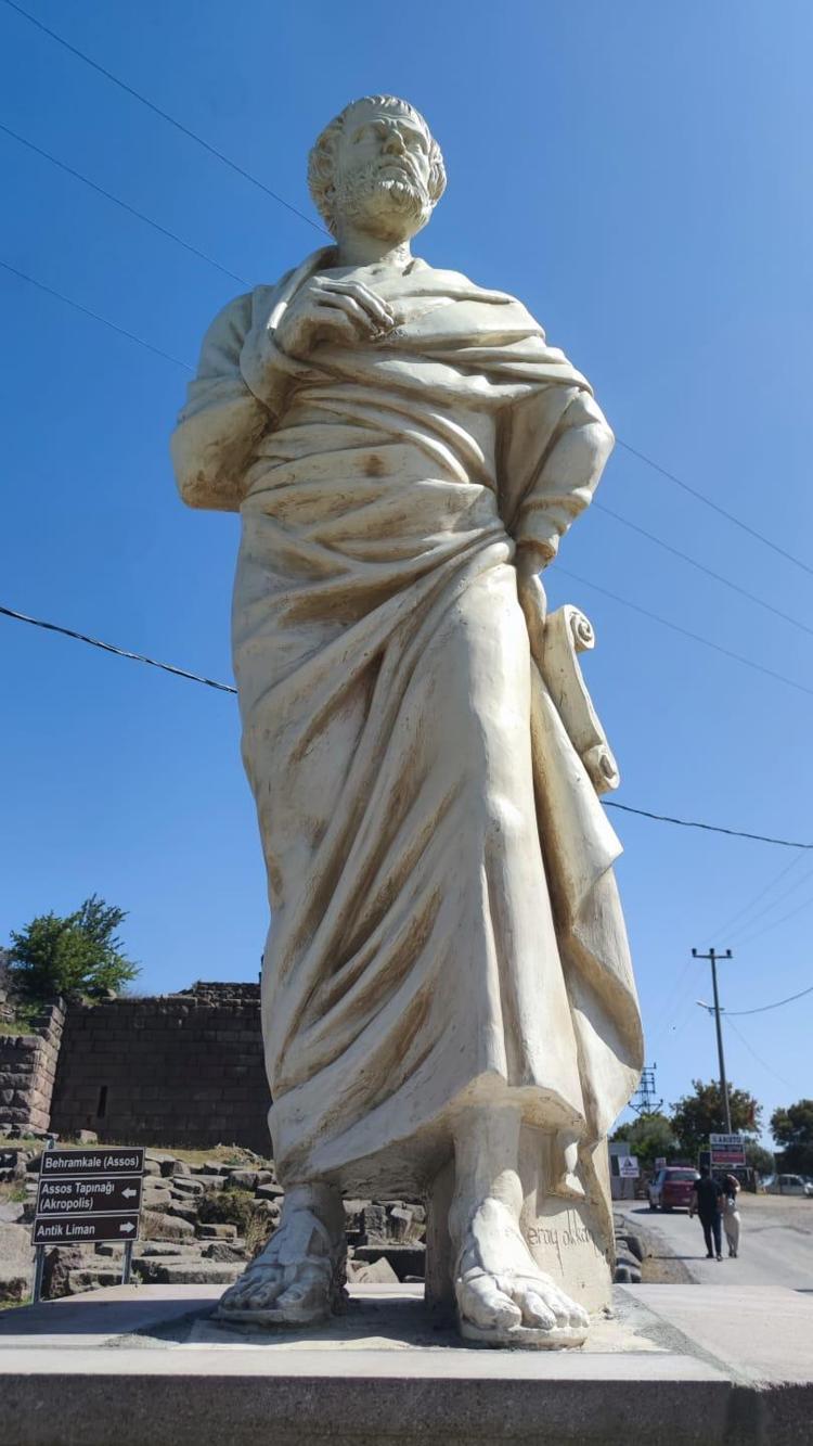 Çanakkale’nin Ayvacık ilçesinde, Assos Ören Yeri'nin de yer aldığı Behram köyü girişindeki tahrip edilen Aristoteles heykelinin yerine yenisi yaptırıldı. Heykeltıraş Eray Okkan’a yaptırılan 2,5 metre boyundaki yeni heykel kaidesine yerleştirildi.