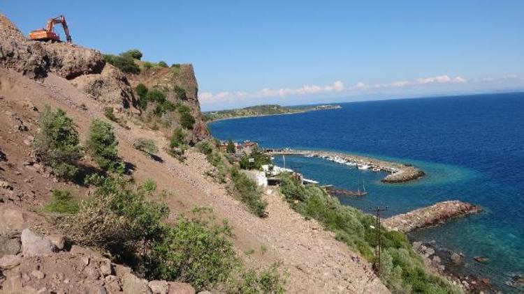 Assos Antik Limanı’na inen yola yamacından taş düşmesi nedeniyle bölge can güvenliğinin sağlanması amacıyla 'afet bölgesi' ilan edildi.
