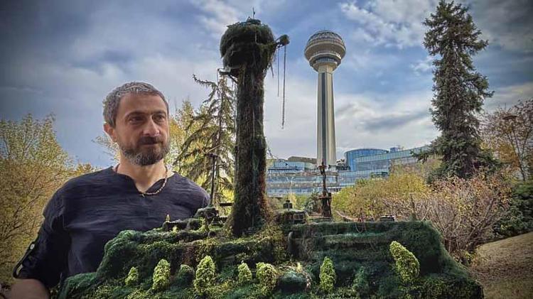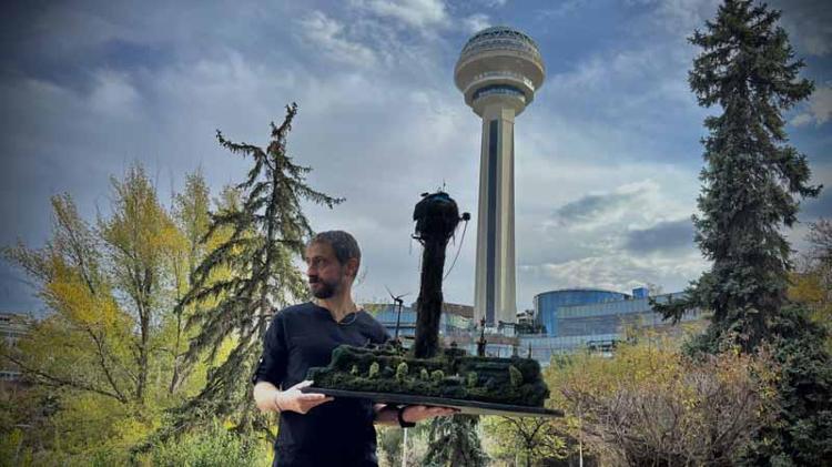 Ankara’da diorama (3 boyutlu modelleme) sanatçısı Melih Şentürk (50), iklim krizi ve su kıtlığına dikkat çekmek için, doğadan ve geri dönüşümden topladığı parçalarla kentin simge yapılarından Atakule'nin ütopik dioramasını hazırladı.