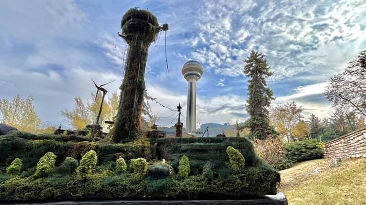 Kentte yaptığı ütopik eserlerle dikkat çeken diorama sanatçısı Melih Şentürk, Atakule'nin 150 yıl sonraki varsayımsal halini sahneledi. Şentürk, bilgisayar parçaları, elyaf kırpıntıları, ağaç dalları ve hurda metallerden oluşturduğu geri dönüşüm eserini, yaklaşık 2,5 ayda tamamladı. Şentürk, bilinçsiz tüketim ve kontrolsüz kaynak kullanımı sonucu ortaya çıkan su kıtlığına ve iklim değişikliğine dikkat çekmek için hazırladığı eseri Atakule'de sergilemek istiyor. Şentürk, iklim krizi ve su kıtlığına kayıtsız kalamadığını ifade ederek, "Bizim belli bir dünyamız ve belli bir kapasitesi var. Burada sağlayabileceğimiz belli miktarda enerji kaynaklarımız var.