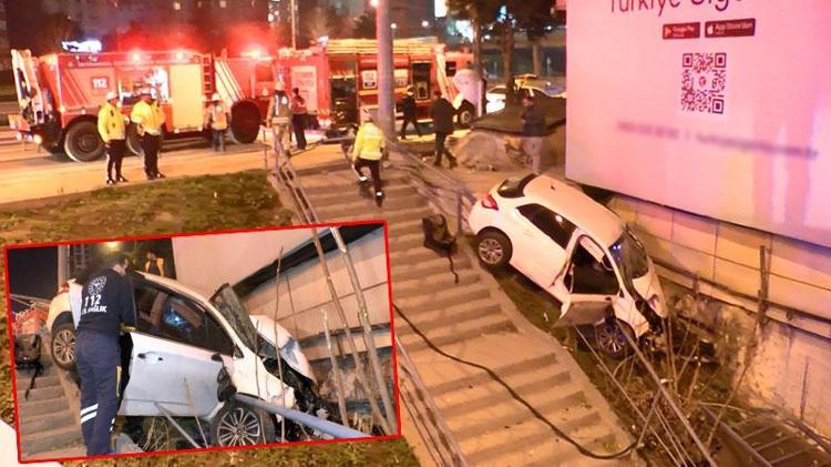 Ataşehir'de 14 yaşındaki Mehmet Alp Ç.'nin kullandığı otomobil, iddiaya göre sürücüsünün fren yerine gaza basması sonucu virajda bariyerleri aşarak karşı sokağa uçtu. Kazada 2 kişi yaralanırken, otomobilde sıkışan sürücü itfaiye ekipleri tarafından kurtarıldı.