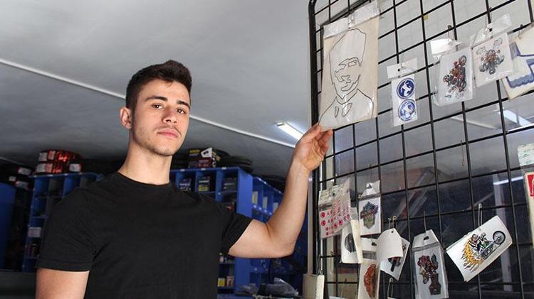 Antalya'da lastik tamircisi Mehmet Can Sevinç'in (20) dükkanına müşteri gibi gelen kişi, kapıda asılı, üzerinde Mustafa Kemal Atatürk görselinin bulunduğu etiketi alıp, yere attıktan sonra su dökerek ayağıyla defalarca bastı. Duruma kayıtsız kalmayan Sevinç, tezgahın üzerinden atlayarak müdahale etti. O anlar, güvenlik kamerasına yansıdı.