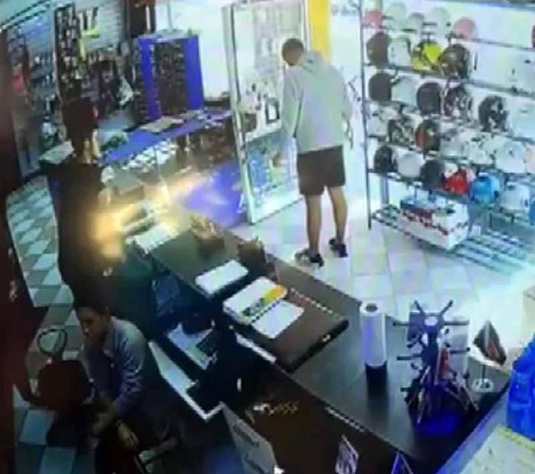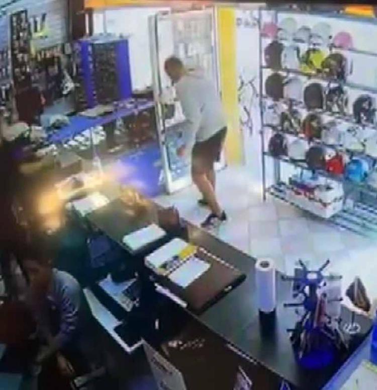 Ardından etiketi yere atan bu kişi, önce ağzındaki suyu etikete döktü, ardından ayağıyla üzerine defalarca bastı. Bu sırada ne olduğunu anlamaya çalışan Sevinç, tezgahın üzerinden atlayarak müdahalede bulundu.