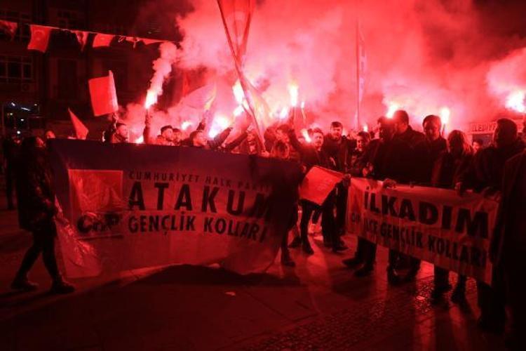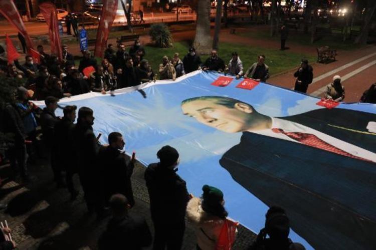 CHP Gençlik Kolları üyeleri, dev Atatürk posteri ile yürüyüş düzenledi.
