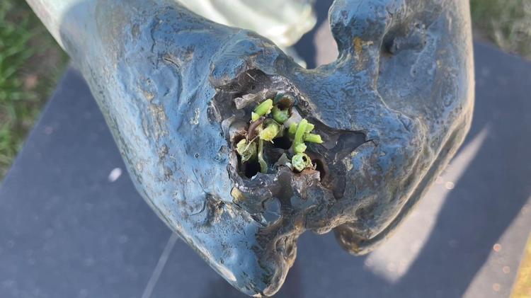 'Atatürk'e çiçek veren kız' heykelinin çiçekleri kırılmış
