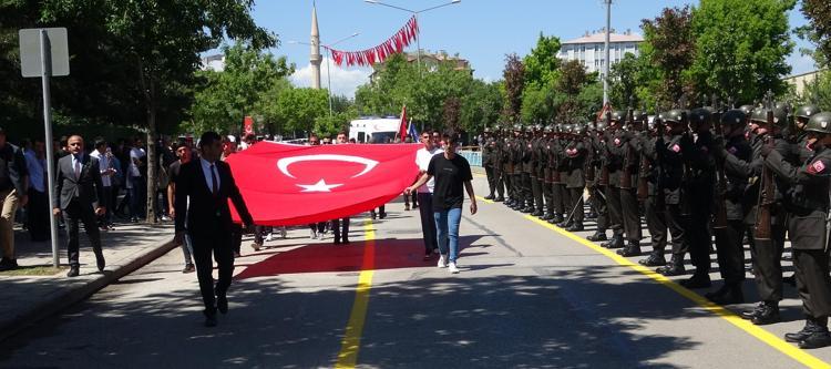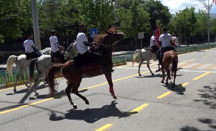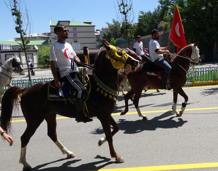 Vali Okay MemiÅŸ, Garnizon Komutan ve 9'uncu Kolordu Komutanı Tümgeneral Fedai Ünsal, Erzurum BüyükÅŸehir Belediye BaÅŸkan Mehmet Sekmen ve katılımcılar önde atlı cirit takımı, Türk bayrağı ve Atatürk posteri ile Atatürk Anıtı'na doÄŸru yürüyüşe geçti. Bando takımının marÅŸlar seslendirdiÄŸi yürüyüş sırasında, cirit atlarının davul- zurna çalarken geçiÅŸi ilgi gördü.Â