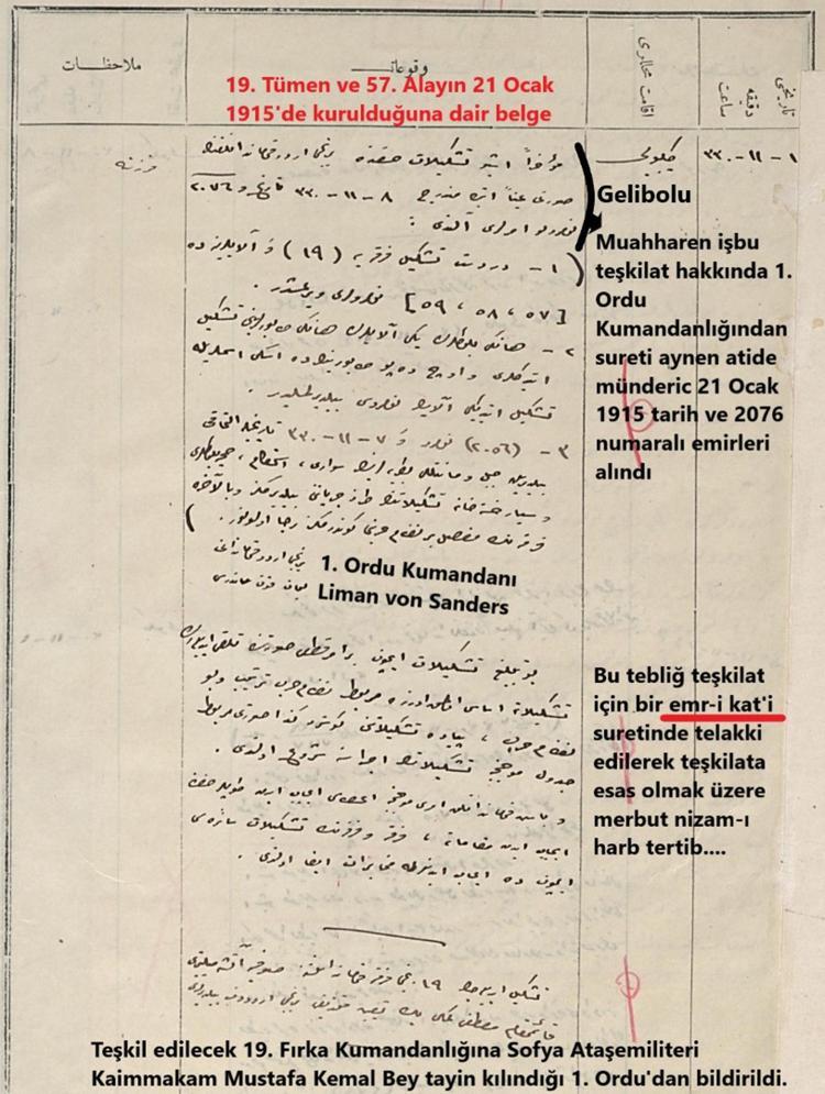 Bu sırada Sofya'da askeri ateşe olarak görev yapan Mustafa Kemal Bey'in ısrarla faal bir görev istediğini belirten Dr. Sabah, "Kendisi yeniden kurulması düşünülen bu tümenin komutanlığına atanacaktır. Mustafa Kemal Bey'in atanma yazısına baktığımızda '19' numarasının geçmediğini sadece yeniden teşkili düşünülen tümen komutanlığına atandığı ibaresinin geçtiğini görmekteyiz. Çünkü 20 Ocak 1915 tarihinde Mustafa Kemal Bey, tümen komutanlığına atandığında tümenin numarası da aynı gün veriliyor. Bunun üzerine 1’inci Ordu Komutanı Mareşal Liman Von Sanders ertesi gün 3'üncü Kolordu'ya emir veriyor. 21 Ocak 1915 tarihinde 3'üncü Kolordu ceridelerine baktığımızda Liman Paşa'dan gelen bu emrin 'kesin' bir emir kabul edildiğini ve tümenin teşkilat çalışmalarına başlandığını, yani resmen kurulmuş olduğunu görmekteyiz" dedi.