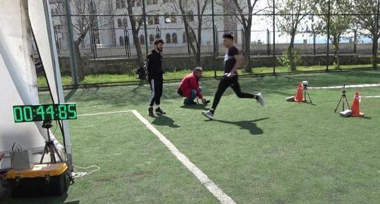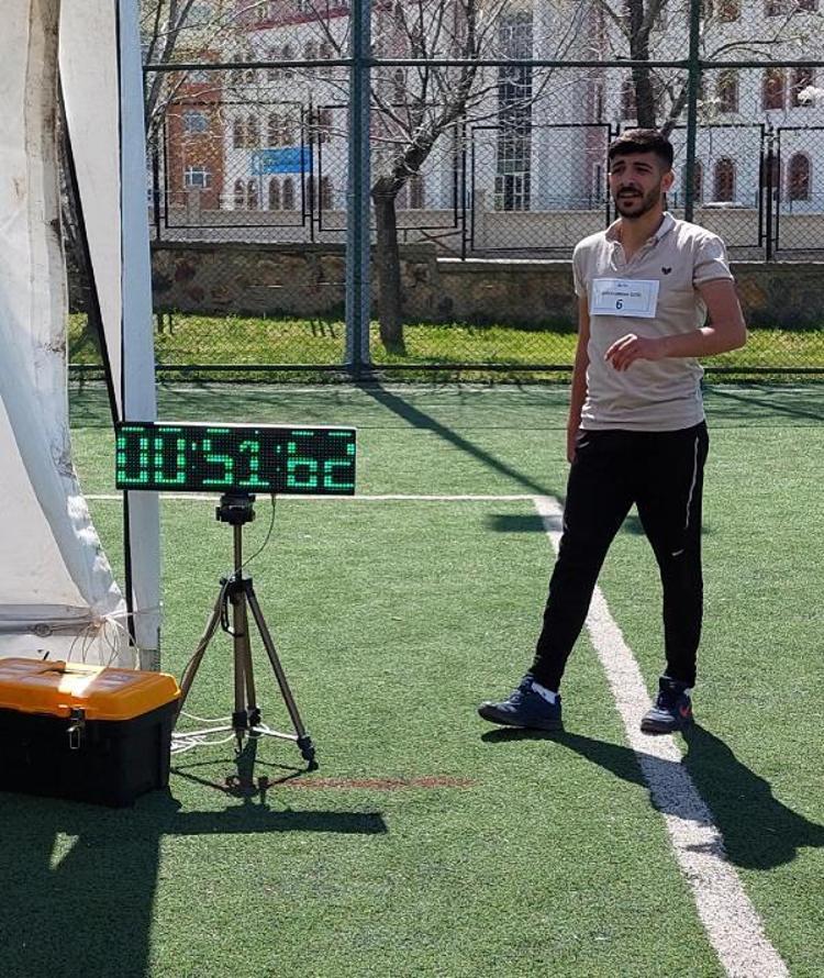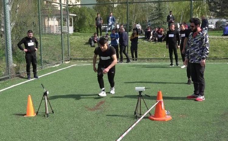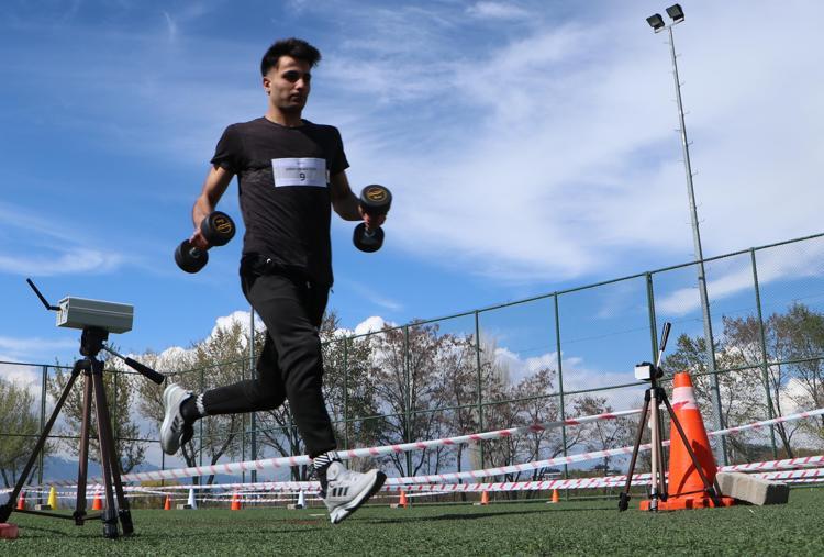 Bölge müdürlüğü sahasındaki piste çıkan gençler, fotosel kontrolünde zamana karşı yarıştı. 100 metrelik koşunun 50 metresini serbest, 50 metresini ise 5'er kiloluk 2 dumbbell ile koşan gençler, pisti en kısa sürede tamamlama mücadelesi verdi.