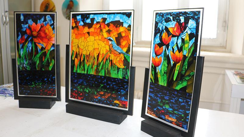 Atık camlardan bitki ve kuş figürleri yapıyorlar
