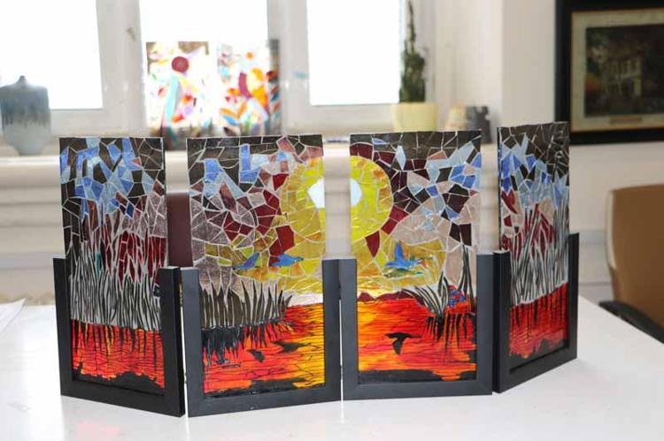 Samsun Olgunlaşma Enstitüsü Seramik ve Cam Atölyesi'nde kullanılmış ve kırık camlardan Kızılırmak Deltası’ndaki 354 kuş türü ve bitkinin cam füzyon çalışması yapılıyor.