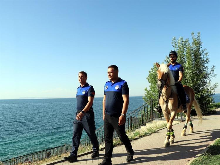 Van'ın Edremit Belediyesi Atlı Zabıta Grup Amirliği bünyesinde kurulan atlı birlik, Van Gölü sahillerinde hem denetim yapıyor hem de çocukları sevindiriyor. Ekipler 10 yaşındaki Haflinger ırkı 'Atula' ile denetim yaparken, 7 yaşındaki Pony ırkı 'Fındık' ile küçük çocuklar gezdiriliyor. Atlı Zabıta Grup Amirliği'nde görevli Saim Kuzpınarı, "Yoğun ilgi ile karşılaşıyoruz. Özellikle mesire alanları ve sahil bandına gelenler, atlı birliğimize yoğun ilgi gösteriyor" dedi.