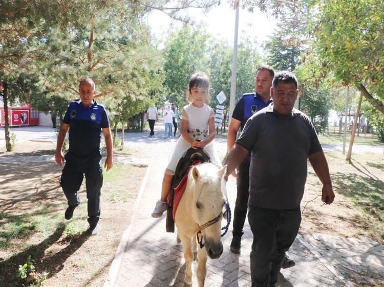 Atlı zabıtanın 'Fındık'ına çocuklardan yoğun ilgi