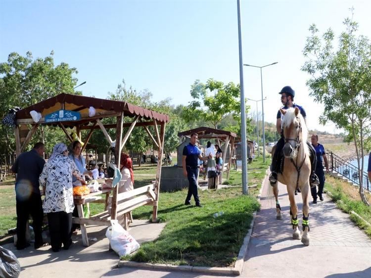 Piknik ve mesire alanlarında belirli alanlar dışında ateş yakılmaması, semaver ve mangaldan kalan közlerin belirli alanlara boşaltılması, sahil bandı çevresinde denize girmenin tehlikeli veya yasak olduğu ve her şeyden önce onların temel güvencelerini bizim alanımız olduğu konusunda bilgilendiriyoruz. Atlı zabıtanın temel amacı, denetimlerden ziyade halkla iç içe olarak güler yüzlülüğümüzü de gösteriyoruz.