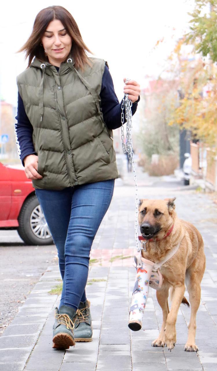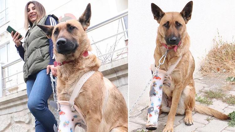 Sahibini bulamadık. Artık o bizim evladımız oldu. Parçalanan ayağını yere basamadığı için ortez yaptırdım. Dışarı çıkardığımda onu kullanıyoruz. Umarım ayağını tekrar kullanabilir" diye konuştu.