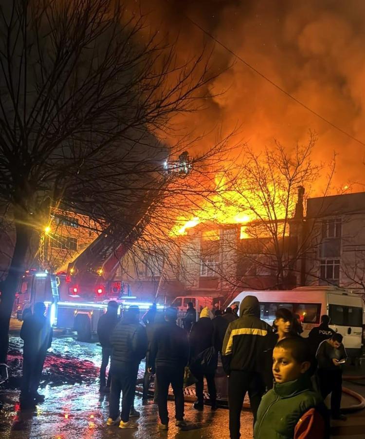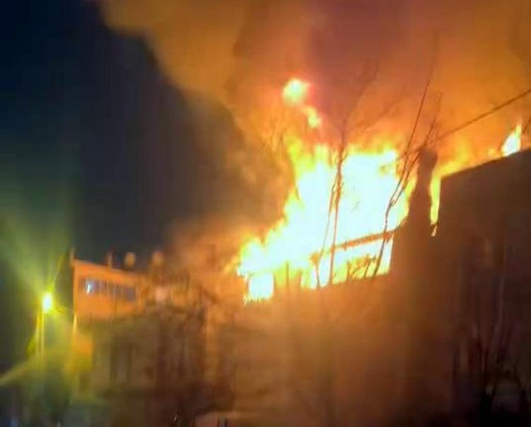İhbar üzerine gelen itfaiye ekiplerinin söndürmeye çalıştığı yangın bitişikteki iki binaya sıçradı.