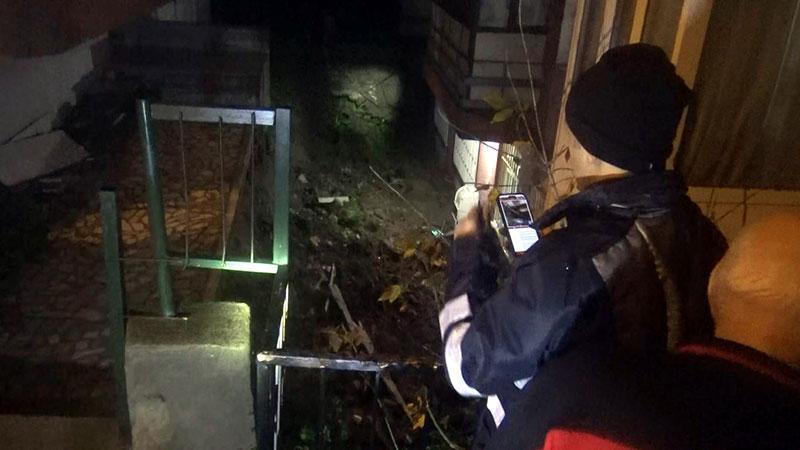 Yıkılan istinat duvarının olduğu alan ekipler tarafından şerit çekilerek kapatılırken, incelemeler devam ediyor.