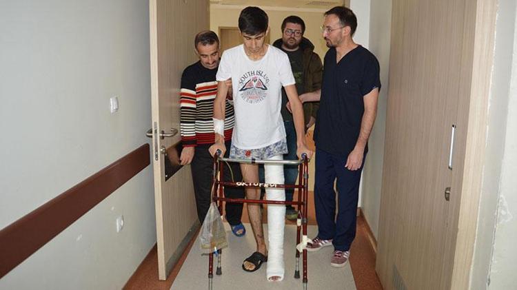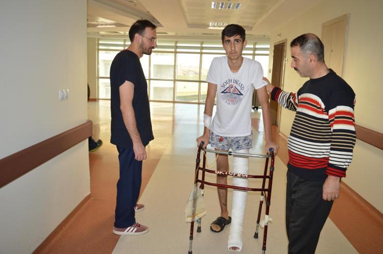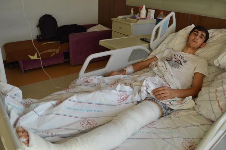 Siirt’in Eruh ilçesinde tarlada çapa makinesine ayağını kaptırarak, askeri helikopterle hastaneye kaldırılan ve geçirdiği başarılı ameliyatlarla ayağının kesilme riski kalmayan Mehmet Ali Kaçmaz (15), “Hastaneye götürüldüğüm zaman ayağım ters dönmüş yüzüme bakıyordu, sonrasını hatırlamıyorum. Doktor ağabeyler sağ olsun, ayağımı kesilmekten kurtardılar” dedi.