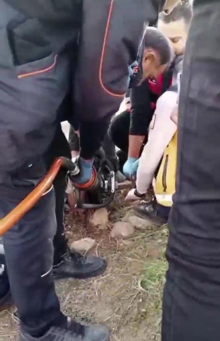 Ekipler, önce motoru kesti. Mehmet Ali’nin kan kaybının artmaması için, ayağına saplanan demir parçasının da dışarıdaki kısmı kesildi.