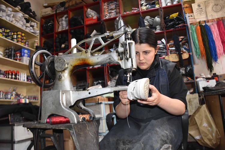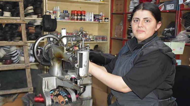 Ayakkabı tamircisi çırağı 16 yaşındaki Esra, kentte tek