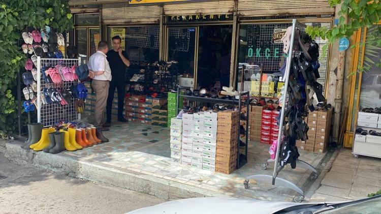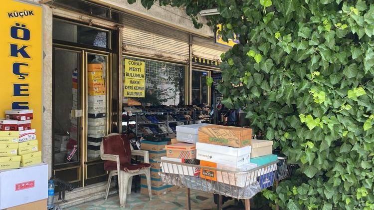 Selahattin Ökçesiz (fotoğrafta), sabah dükkanını açtıktan sonra fırçayla iş yerinin önünü süpürmeye başladı.