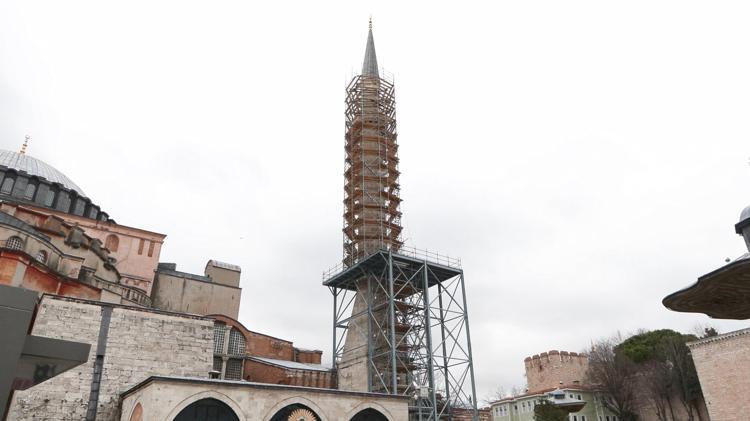 Ayasofya-İ Kebir Cami-i Şerifi'nde başlatılan restorasyon kapsamında II.Bayezid Minaresi'ndeki çalışma yapılıyor. Ayasofya restorasyonu Bilim Kurulu Üyesi Prof.Dr.Hasan Fırat Diker çalışmayla ilgili, "Külahtan itibaren şerefe kısmına kadar taşların söküm işlemi gündeme gelecek." dedi. Diker çelik iskele ve ziyaretçi giriş kapısıyla ilgili ise, "İskeleyle beraber alttaki giriş unsuru da restorasyonun bir parçası, minarenin restorasyonu tamamlandıktan sonra iskeleyle beraber giriş kapısı da sökülecek. Tamamı geçici. Zaten buraya ne yapılırsa yapılsın hiçbirşey buraya yakışmaz." diye konuştu.