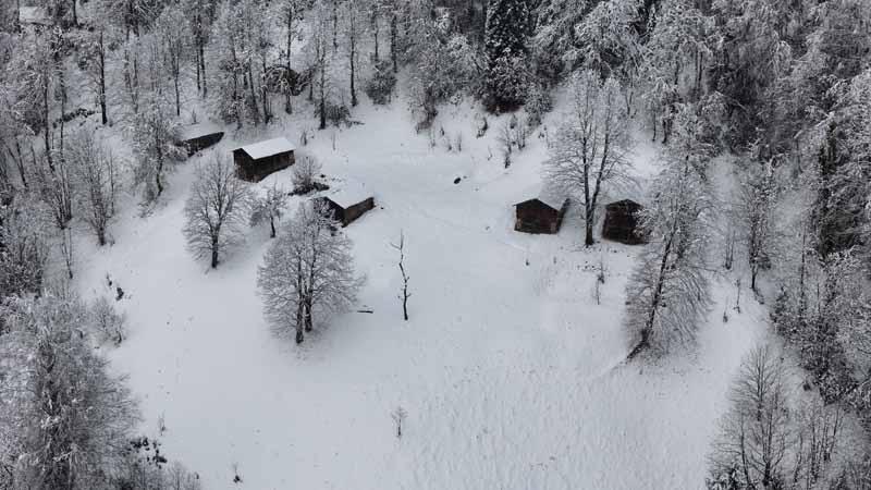 Rize'nin dünyaca ünlü turizm merkezi Ayder Yaylası'nda aralıklarla etkili olan kar yağışıyla birlikte kar kalınlığı 20 santimetreye ulaştı. Kar yağışının ardından beyaz örtüyle kaplanan bölge, dronla havadan görüntülendi.