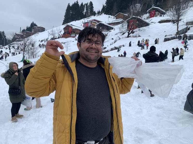 Poşetle kayan Serdar Köyemezre, "Ankara’dan geliyoruz. Sinerji, ortam çok güzel. Keyif alıyoruz. Geçen sene televizyondan izlemiştik. Bu sene canlı yaşıyoruz. Eğlence harika. Organizasyonu yapanlara da teşekkür ediyoruz. Burda küçüklüğümüzü hatırladık. Ankara'da uzun zamandır kar yağmadığı için o özlemi burada gideriyoruz" diye konuştu. Antalya'dan gelen Kumsal Kaplan da "Ayder'i çok güzel bulduk. İlk kez kaydık. Herkes birlikte kayıyor. 'Abla poşeti koy atla' dediler, bize atladık" dedi.
