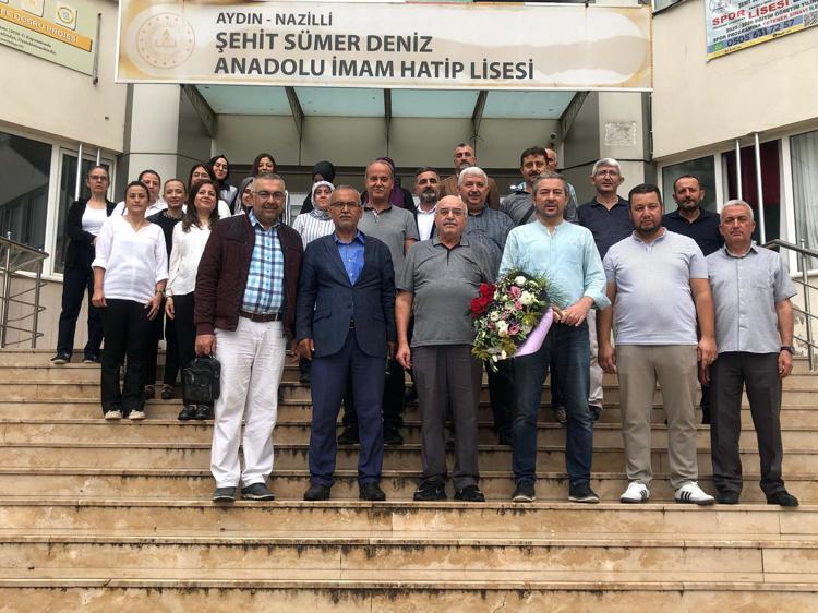 Aydın’ın Nazilli ilçesinde 40 yıllık meslek dersi öğretmeni Ali Çetin Büyükgenç, mezun olduğu Nazilli Şehit Sümer Deniz Anadolu İmam Hatip Lisesi'ndeki görev süresini tamamlayıp, emekliye ayrıldı. Büyükgenç, meslek hayatına öğrenci ve okul yönetiminin sürpriz töreniyle veda etti.