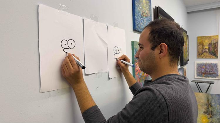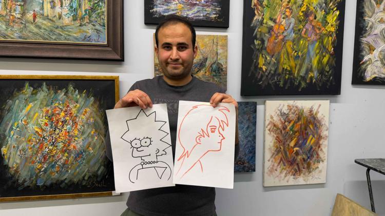 Mersin'den Ankara'ya üniversite okumak için gelen İskender Kozan, 2 yıl önce bir merakla başlayan 2 eliyle aynı anda 2 farklı resim çizme yeteneğini geliştirdi.