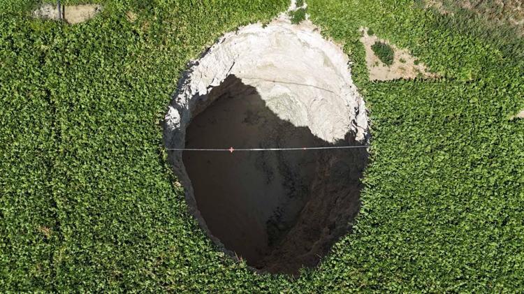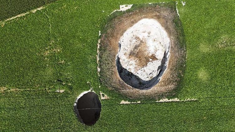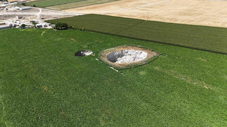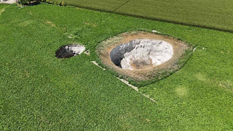 Konya'nın Karapınar ilçesinde pancar tarlasında geçen yıl oluşan obruğun yanında yeni bir obruk daha oluştu. Tarlanın kenarında evi bulunan Fatih Şık, “Tarlamda geçen yıl da obruk oluşmuştu. Dün yeni oluşan obruğun bulunduğu yerden 5 kez geçtim. Ben üstünden geçerken, obruk oluşsaydı ne olacaktı?” dedi.