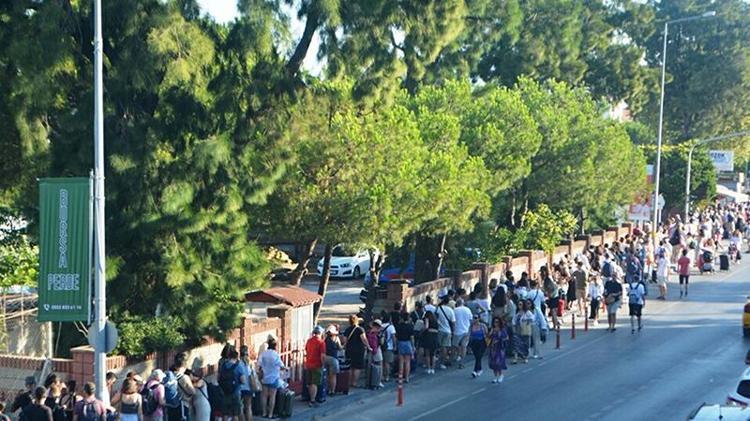 Balıkesir'in Ayvalık ilçesindeki Deniz Hudut Kapısı'nda, hafta sonunu resmi tatil olan 15 Temmuz Demokrasi ve Milli Birlik Günü'yle birleştirerek tatil için Yunanistan'ın Midilli Adası'na gitmek isteyenler, uzun kuyruklar oluşturdu. 3 gün içinde Midilli Adası'nı ziyaret edeceklerin sayının 5 bini geçmesinin beklendiği bildirildi.