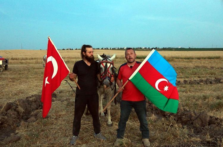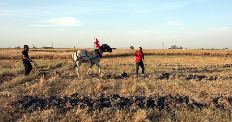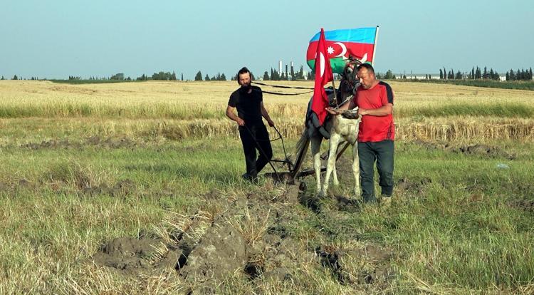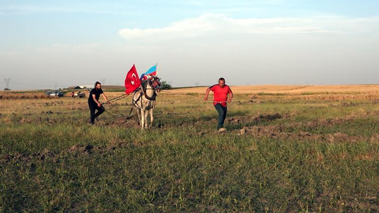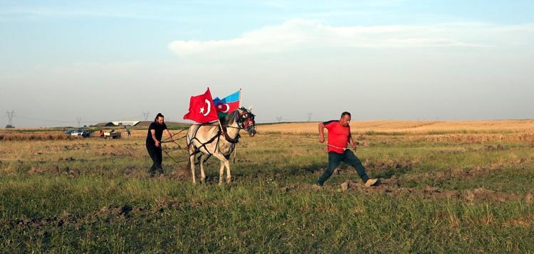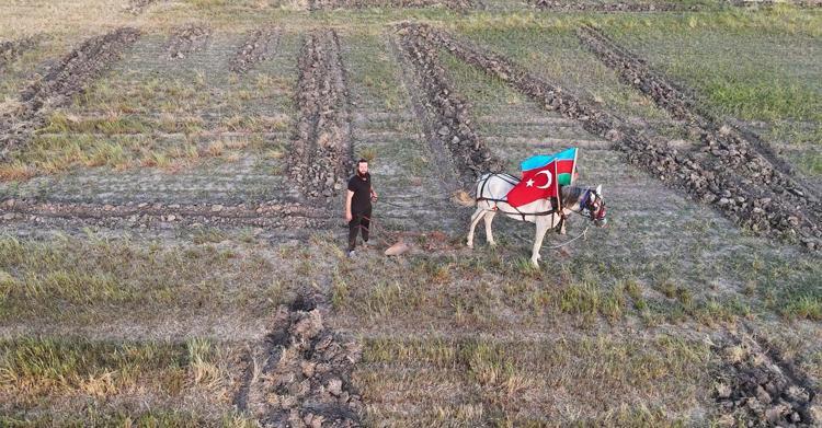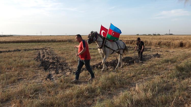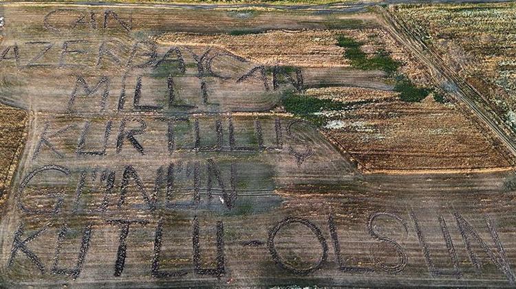 Kırklareli'nin Lüleburgaz ilçesine bağlı Evrensekiz beldesinde yaşayan Burak Tunçkol, dizi oyuncusu Melikşah Özen ile tarlaya at ve kara saban kullanarak 'Can Azerbaycan Milli Kurtuluş Günün Kutlu Olsun' yazarak, Azerbaycan'ın Milli Kurtuluş Günü’nü kutladı.