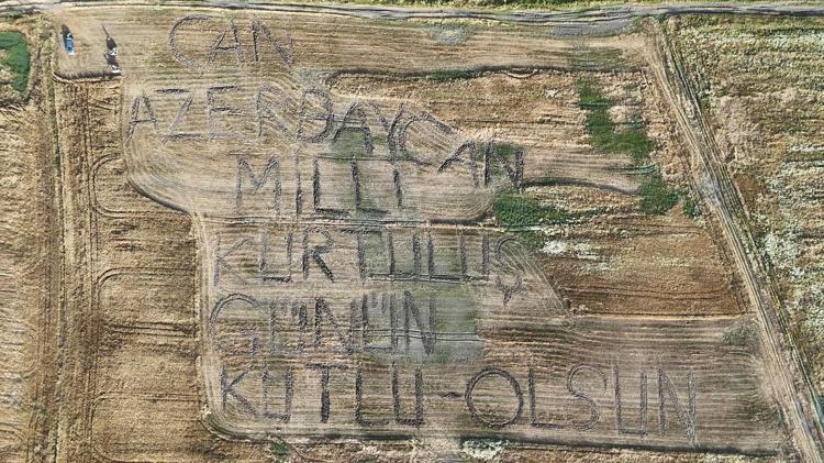 Azerbaycan'ın Milli Kurtuluş Günü'nü tarlaya yazdıkları yazıyla kutladılar