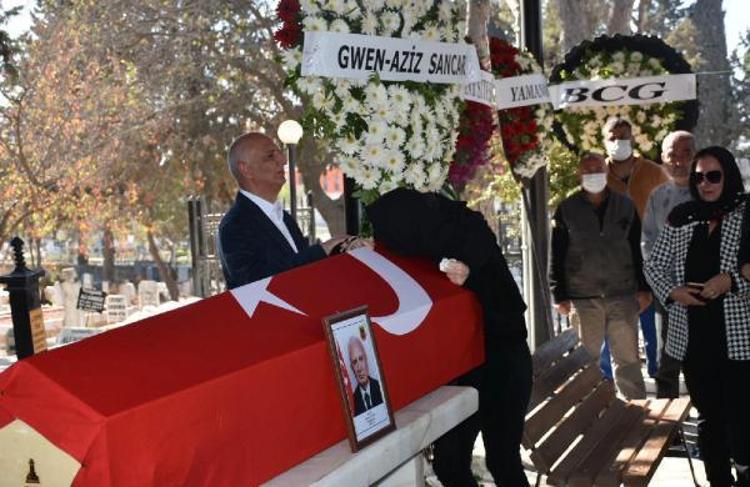 Aziz Sancar ve eşi ise katılamadıkları cenazeye çelenk gönderdi.