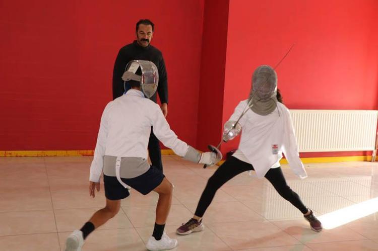 Van Yüzüncü Yıl Üniversitesi (YYÜ) Tıp Fakültesi'nde sağlık teknikeri olarak görev yapan Aziz Saydut'un (47) antrenörlük yaptığı ortaokulda 8’inci sınıfta okuyan oğlu Süer Bulut Aras Saydut (13), eskrimde U14 Erkekler Kılıç Türkiye Klasmanı’nda birinci oldu. 4'ü kendi çocuğu 8 sporcuya gönüllü olarak eskrim antrenörlüğü yapan Saydut'un yetiştirdiği sporcular, gelecek yıl düzenlenecek yarışmalara hazırlanıyor.