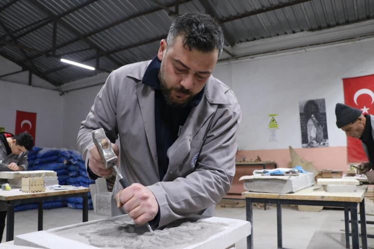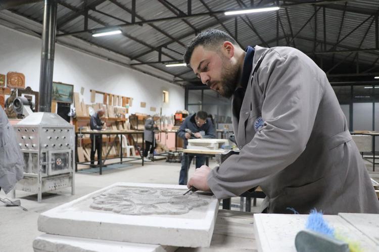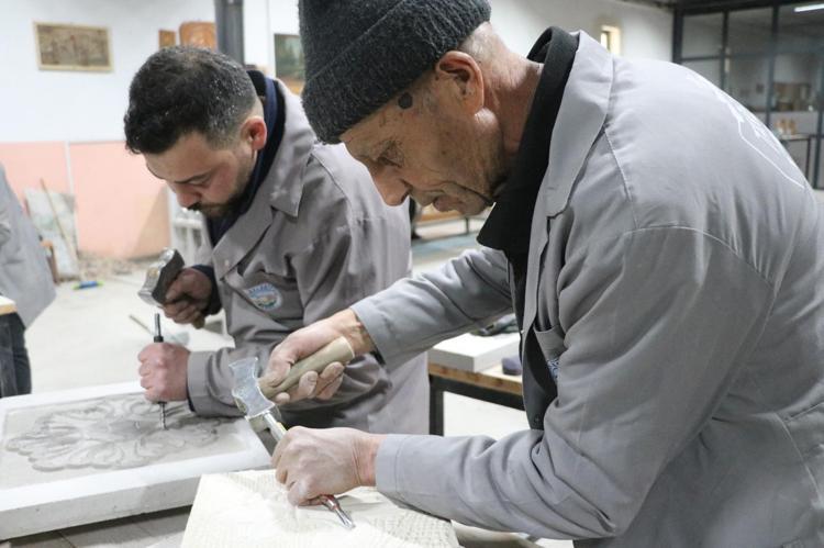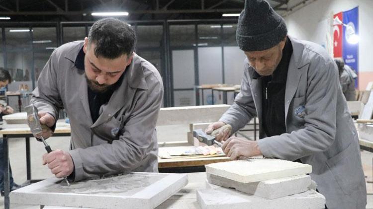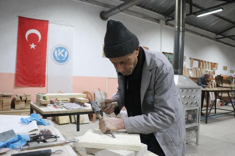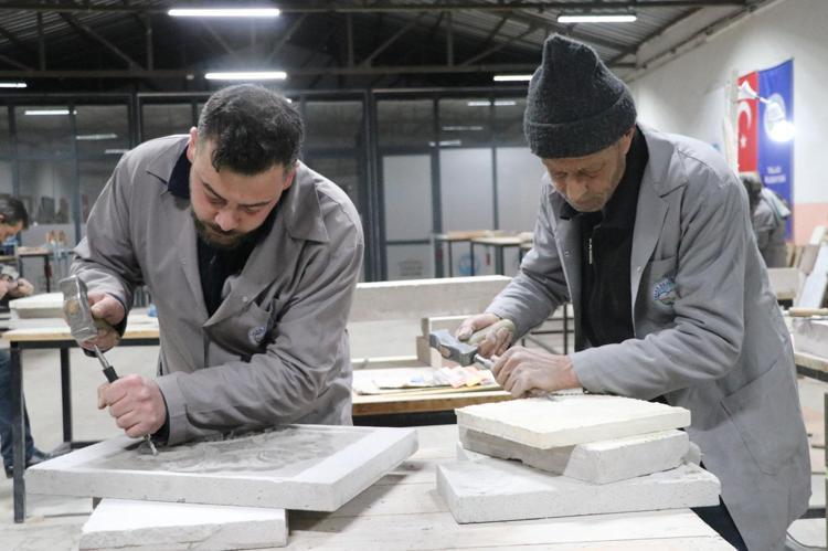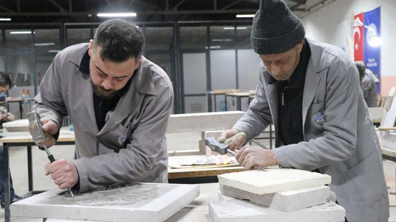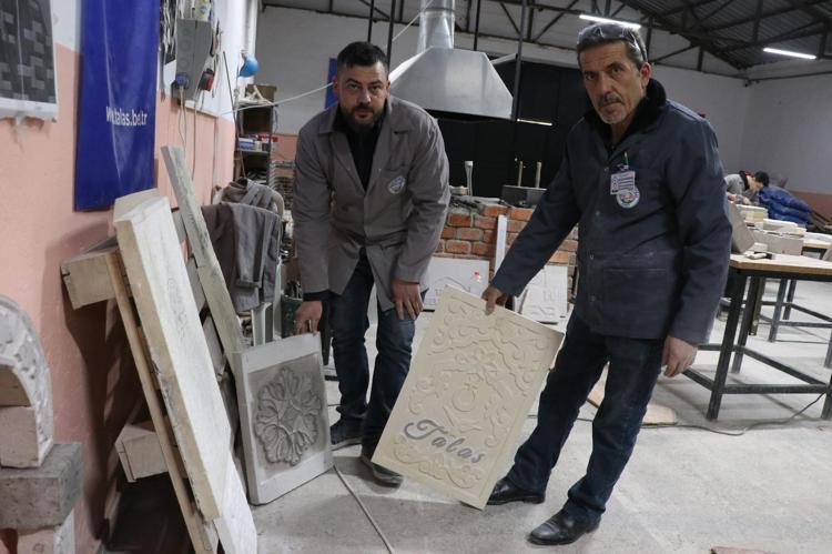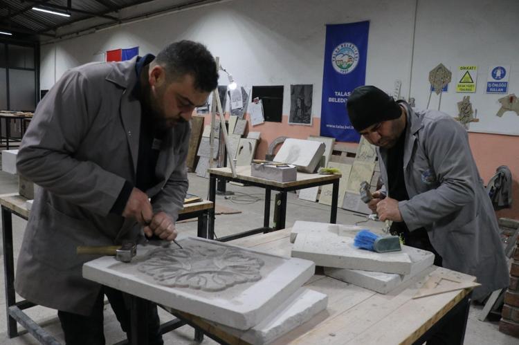 Talas ilçesi Zincidere Mahallesi'nde 119 yıl önce yapılan Sion Yetimhanesi'nin (Köy Muallim Mektebi) bahçesindeki atölyelerde taş, ahşap ve restorasyon ustası yetiştirilmesine yönelik kurs veriliyor. Talas Belediyesi ve Kayseri Üniversitesi (KAYÜ) iş birliğiyle 2 yıl önce hizmete açılan Talas Restorasyon Eğitim Merkezi'nin (TAREM) ustaları, 2025'te Kültür ve Turizm Bakanlığı tarafından verilen 'Somut Olmayan Kültürel Miras Taşıyıcıları' kartını almaya hak kazanırken, kursiyerler de kendi alanlarında usta öğretici oluyor. Atölyede çalışan ve Osmanlı'nın baş mimarı Mimar Sinan'ın ismini taşıyan mahallede yaşadığını söyleyen Mehmet Dilci ve oğlu Samet Dilci, her gün tarihi yetimhanenin bahçesinde doğal taşa şekil veriyor.