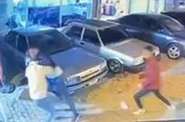 Konya'nın Seydişehir ilçesinde babasına ait galerinin önünde cep telefonu kamerasıyla görüntü çeken Furkan Keser, (14) aynı caddedeki galeride çalışan F.Ö. (22) 'Ne bakıyorsun' diye laf atınca kavga çıktı. Çevredekilerin müdahalesiyle sona eren kavganın ardından F.Ö., beraberindeki yakınlarıyla birlikte gelip Furkan Keser ve babası Ali Keser'e (43) sopa ve muştayla saldırdı. Yaşananlar, güvenlik kamerasına yansıdı.