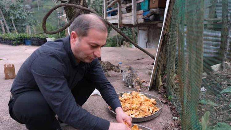 Rize'de lokanta işletmecisi Ali Reyhan, babasından kendisine miras kalan geleneği devam ettirip, işletmelerinden arta kalan yemekleri sokak hayvanlarına götürüyor. Sokak kedilerini elleri ile besleyen Reyhan,"Biz de mutlu oluyoruz; heyecanlı, gururlu oluyor, babamızı yad ediyoruz. Buraları boş bırakmıyoruz" dedi.