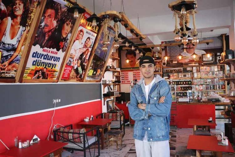 Kayseri’nin Talas ilçesinde hayalini kurduğu çiğ köfte dükkanı açan Oktay Gök (20), babasının 40 yıllık koleksiyonunu devralıp işletmesini tarihi plak, kaset ve film afişlerinin de aralarında olduğu nostaljik bin eser ile donattı. Nostalji tutuklarının dükkanına yoğun ilgi gösterdiğini belirten Gök, “Gelenler çok şaşırıyor. Burada sadece çiğ köfte yenilmiyor. İsteyen gelip eski plaklardan şarkısını dinleyip gidebiliyor” diye konuştu.
