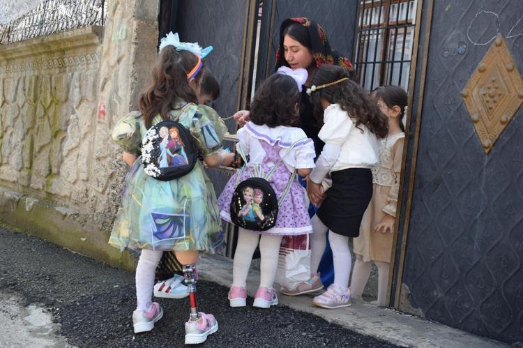 Batman'da sağ ayağı içe dönük, yapışık ve ana kemiği olmadan dünyaya gelen, 3 yaşında bacağı kesilmek zorunda kalan Dicle Sertkaya (5) hayırseverlerden toplanan yardımlarla alınan ve arife günü getirilen protez bacak sayesinde yürümeye başladı. Dicle, protez bacağına kavuştuktan sonra akranlarıyla beraber kapı kapı dolaşarak bayram şekeri topladı. Annesi Mizgin Sertkaya (31), kızını artık okula gönderebileceğini ifade ederek, “Kızımın ana kemiği yoktu. O yüzden bacağı kesilmek zorunda kaldı. Dışarı çıkamıyordu, arkadaşlarıyla oynayamıyordu. Onlara hep pencereden bakıyordu. Kızım ilk defa bu bayram şeker topladı. Ben çok mutlu oldum. Bu duygu anlatılamaz gerçekten. Anaokulunda uyum sağlayamadığı için kızımı okula da gönderemedim ama şu anda bacağı olduğu için gönderebilirim artık” dedi.