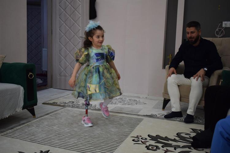 Çok mutlu olduğunu ifade eden Dicle ise “Ben yürümek istiyordum. Bana bacak getirdiler, çok mutlu oldum. Şeker toplamaya çıktım, arkadaşlarımla oynadım, okula da gideceğim. Çok teşekkür ediyorum” dedi.