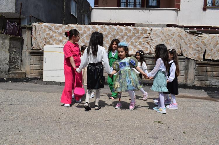 Bacağına protez takılan Dicle, arkadaşlarıyla bayram şekeri topladı