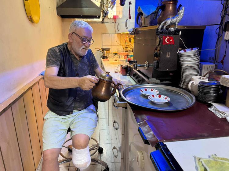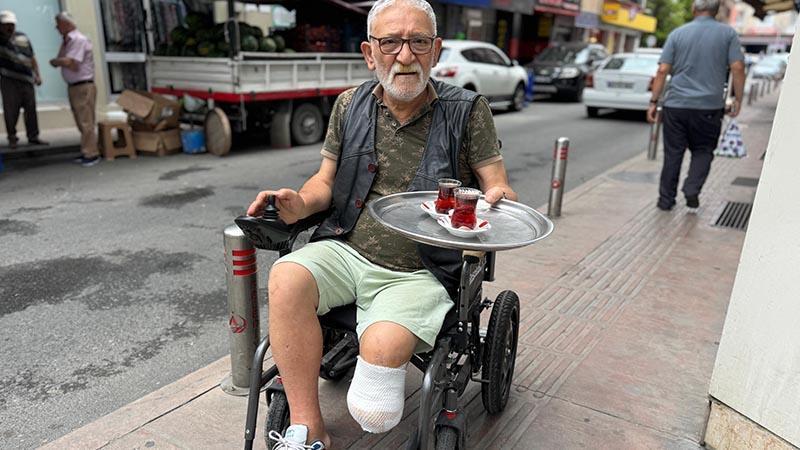 Ordu'da geçirdiği motosiklet kazasında sol bacağı diz altından kesilen Şahin Çakır (65), mesleğini severek sürdürüyor. Kendisine ait kahvehaneye işleten, siparişleri tekerlekli sandalye yapan Çakır, “Şu an tek ayağımla çay dağıtmaya devam ediyorum çünkü bu sayede hayata tutunuyorum” dedi.