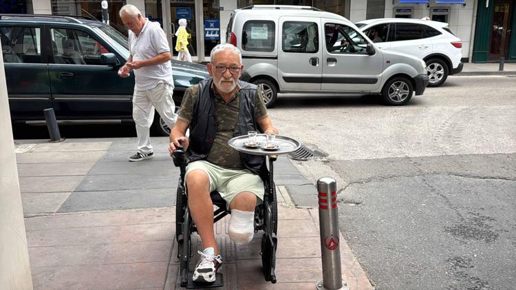 Bacağını kazada kaybeden kahvehaneci, siparişleri tekerlekli sandalye ile dağıtıyor
