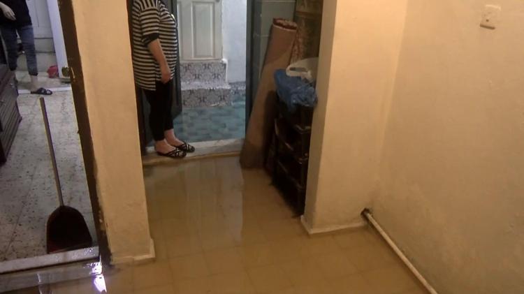 Evlerde yaşayanlar yağmur suyunu kendi imkanlarıyla tahliye etmeye çalıştı.