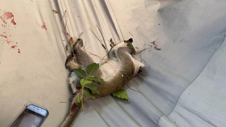 Mahalle sakinlerinin ise "Gel kızım gel" diyerek muz uzatması dikkat çekti. Ekipler, yaklaşık 2 saat süren çalışma sonucunda maymunu uyuşturucu iğne ile bayılttı. Ağaçta bayılmış vaziyette duran maymun yere düşmesin diye mahalle sakinleri branda gerdi.