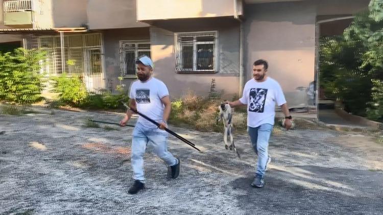 Belediye ekipleri geldi. Bayağı uğraştılar almak için, ancak sonunda alıp götürdüler. Ben de fotoğraf çektirdim. Çok duygulandım. Bayıldığı için üzüldüm ama en azından indirdik. Sevimli bir hayvandı" dedi.