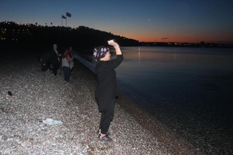 Arkadaşlarıyla Konyaaltı sahiline gelen Banu Çalışkan, “Genel ritüelimiz. Bu tür şeylere toplumca inanıyoruz. Biz de yaptık Allah kabul etsin. İlk ışıklarda gün doğmadan buraya sahile geldik. Sağlık, sıhhat ve mutluluk diledik" dedi.