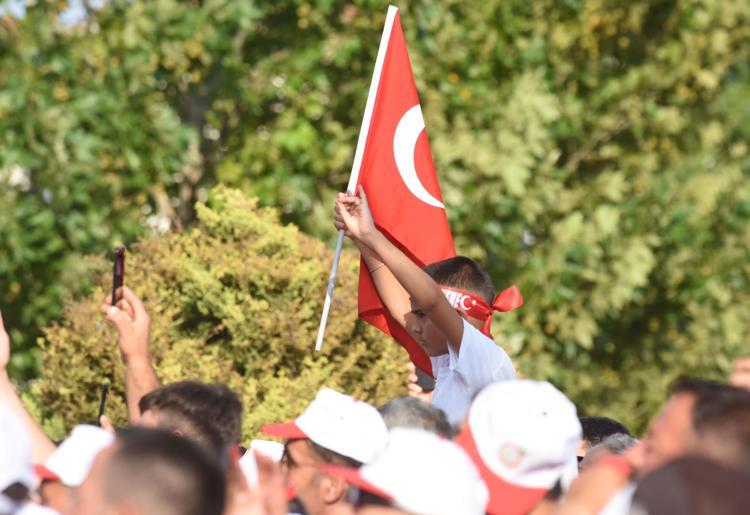 Çağrımız her insanımızı kardeş, her yöremizi aziz bilen herkesedir. Herkes eşittir Türkiye'dir. Paylaşılacak vatanım, vazgeçilecek insanım yok diyen her vatan evladıyla yolumuz birdir. Biz birlikte Türkiye'yiz diyen herkes bu milletin özbeöz evladıdır" ifadelerini kullandı.