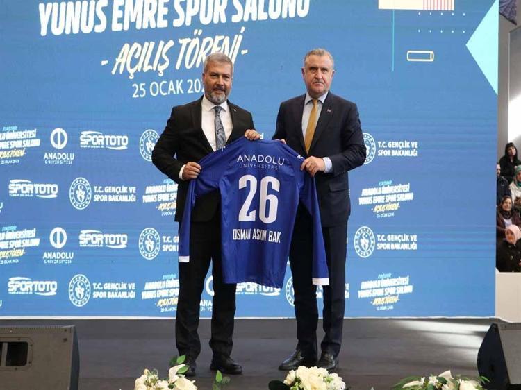 Özellikle Eskişehir’i bir spor şehri olarak gördüğünü ifade eden Bakan Aşkın Bak, kente büyük yatırımlar yaptıklarını söyledi. Cumhurbaşkanı Recep Tayyip Erdoğan’ın sporun içinden gelmesi nedeniyle yapılan devasa yatırımlarla Türkiye’nin bir spor tesisi devrimi yaşadığını ifade eden Bakan Aşkın Bak, “Özellikle de modern stadyumlarıyla; bir tanesi biliyorsunuz Eskişehir’de, 40’a yakın UEFA standartlarında, FIFA standartlarında stadyumlarıyla, kapalı spor salonlarıyla, yüzme havuzlarıyla Türkiye’de büyük spor tesisi yatırımları yapıldı. Evet, bugün bir tanesini de Anadolu Üniversitesiyle beraber biz destekledik. Böylesine güzel, şirin, güzel bir salonu üniversiteye kazandırdık, Eskişehir’e kazandırdık, sizlere kazandırdık. Gerçekten güzel bir atmosfer, butik bir yer. İnşallah bu tesislerden Avrupa, dünya, olimpiyat şampiyonları çıkacak. Dolayısıyla sporu bir yaşam tarzı haline getirmek çok önemlidir. O yüzden bu güzel tesisi doldurun. Bu tesisleri sizlerin cıvıltıları, coşkuları, kazanma serüvenleri, alkışları, başarılarıyla dolduracağız. Türkiye spor ülkesi olma yolunda hızla ilerliyor” dedi.